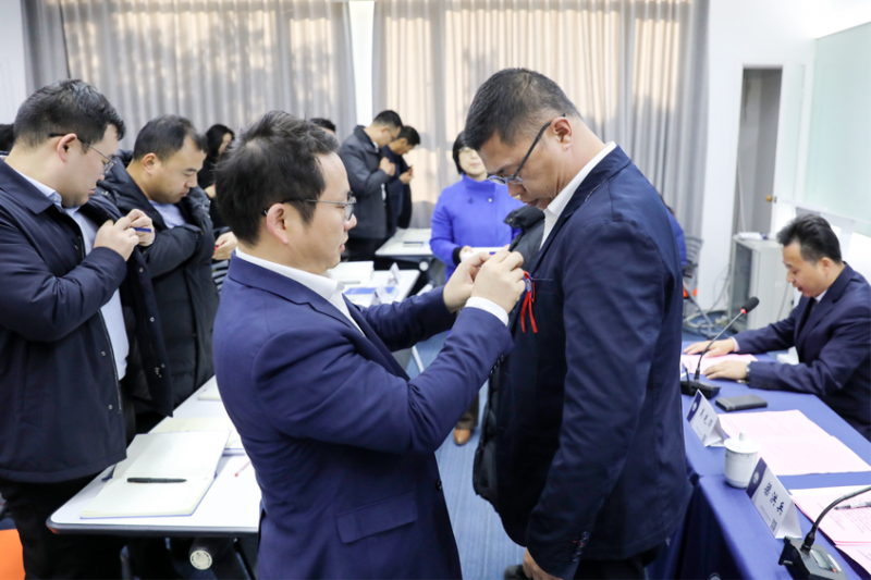 典礼上,吴先华院长为学员代表佩戴校徽,吴先华、梁洪兵共同为盐城港集团代表授予班旗,这也代表盐城港的各位学员正式加入上海海事大学的大家庭。