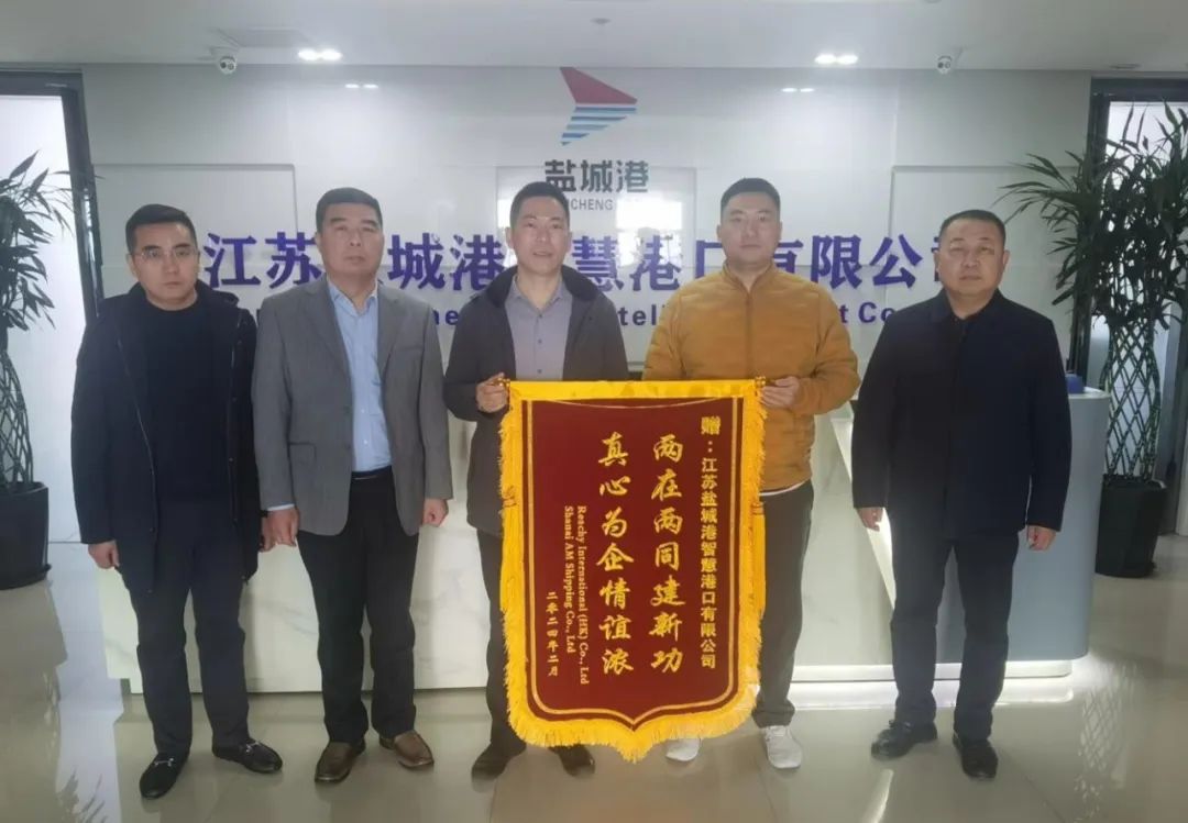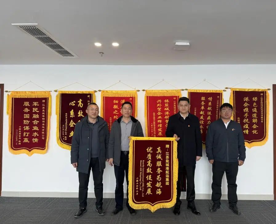 3月11日,香港汭沣航运有限公司、上海禛航船务有限公司代表送来了写有“真诚服务为航海,优质高效促发展”“两在两同建新功 真心为企情谊浓”字样的锦旗,对盐城港航运集团、智慧港口公司长期以来提供的优质高效的服务表达感谢之情。