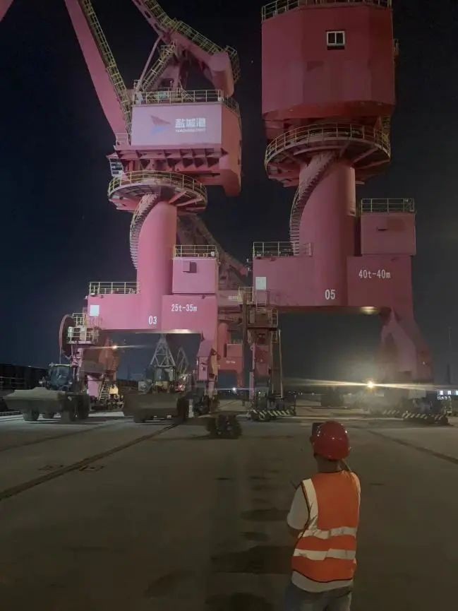 “5#门机入轨正常”“行走机构压轮正常”“回转、起升、变幅机构运行正常”随着现场指挥员对讲机里传来各机构一切正常运行的报告,经过10个昼夜的连续奋战,盐城港射阳港区码头门机移位作业宣告完美收官。
