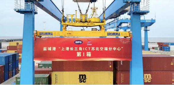 2024年7月9日,沪盐两港携手成立盐城港“上港长三角苏北20万标箱ICT空箱分中心”,拥有20万标箱的年空箱周转能力,旨在为苏北地区企业提供充足的外贸空箱资源、便捷的就近提还箱服务、低廉的用箱成本。空箱中心正式运营后,将与盐城港“沪盐专线”功能叠加、优势互补,可充分满足客户的提空需求,引导和鼓励更多的盐城进出口企业“陆改水”,不断提升“盐货盐运”比例,切实让盐城港成为上海港空箱服务延伸区,提高空箱在盐城港的周转效率,进一步提升盐城港物流资源整体配置能力和港口综合服务水平。