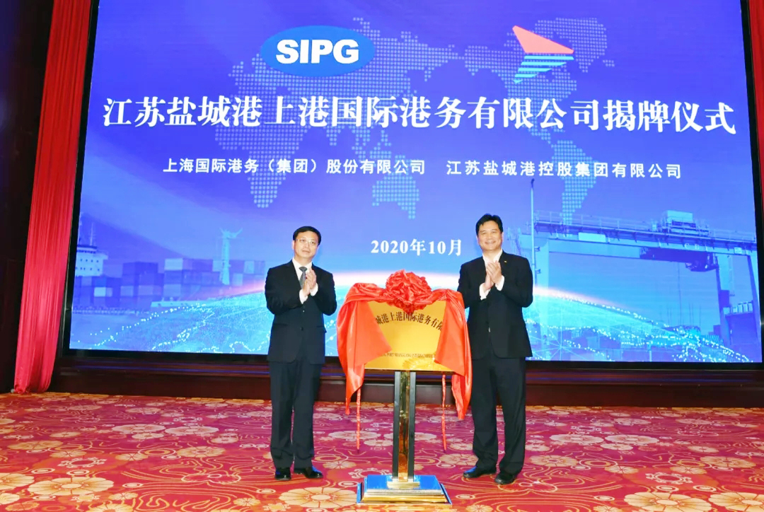10月30日下午,沪盐港航合作活动暨盐城港集装箱海河联运航线推介会在盐城举行,江苏盐城港控股集团和上海国际港务集团签订战略合作协议。盐城市市长曹路宝、上海国际港务集团总裁严俊出席,共同为合资成立的江苏盐城港上港国际港务有限公司揭牌。