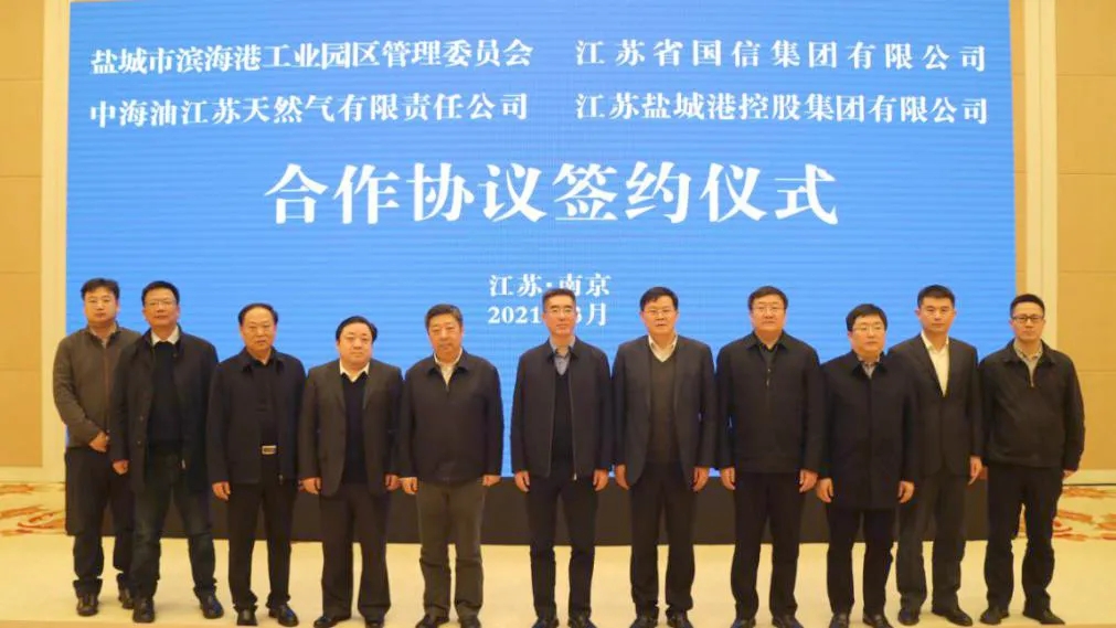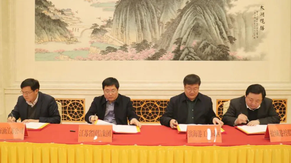 3月2日,滨海港工业园区、省国信集团、中海油江苏天然气公司、盐城港集团在南京签订四方合作协议。市委常委、滨海县委书记、滨海港工业园区党委书记孙轶出席签约仪式。集团党委书记、董事长、总经理周正雄与三家合作单位相关负责同志共同签订《合作协议》。