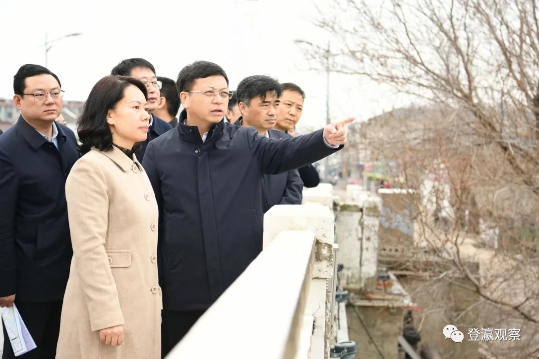 ▲市长曹路宝察看盐都区龙冈镇凤凰桥航段现场