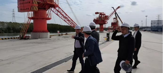 为加快推进亭湖港区试运营准备工作,确保试运营顺利进行,10月14日上午,集团党委委员、董事、副总经理、兴盐港航董事长丁安广一行到亭湖港区视察指导工作。