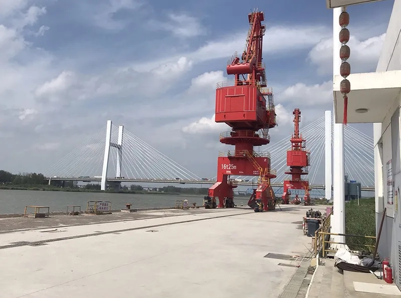 码头工程建设规模为4个1000吨级通用泊位(水工结构按靠泊3000吨级船舶设计)。码头泊位长度324米。结构设计船型为3000t级江海直达货船,设计代表船型为1000吨级散杂货船,兼顾船型为1拖+3×1000吨级船和500吨级散杂货船。设计年吞吐量180万吨,年通过能力194万吨。1#、3#、4#泊位各配置1台16t-20m低门架门座式起重机(台架吊),2#泊位设置1台装船机及斜槽输送系统。