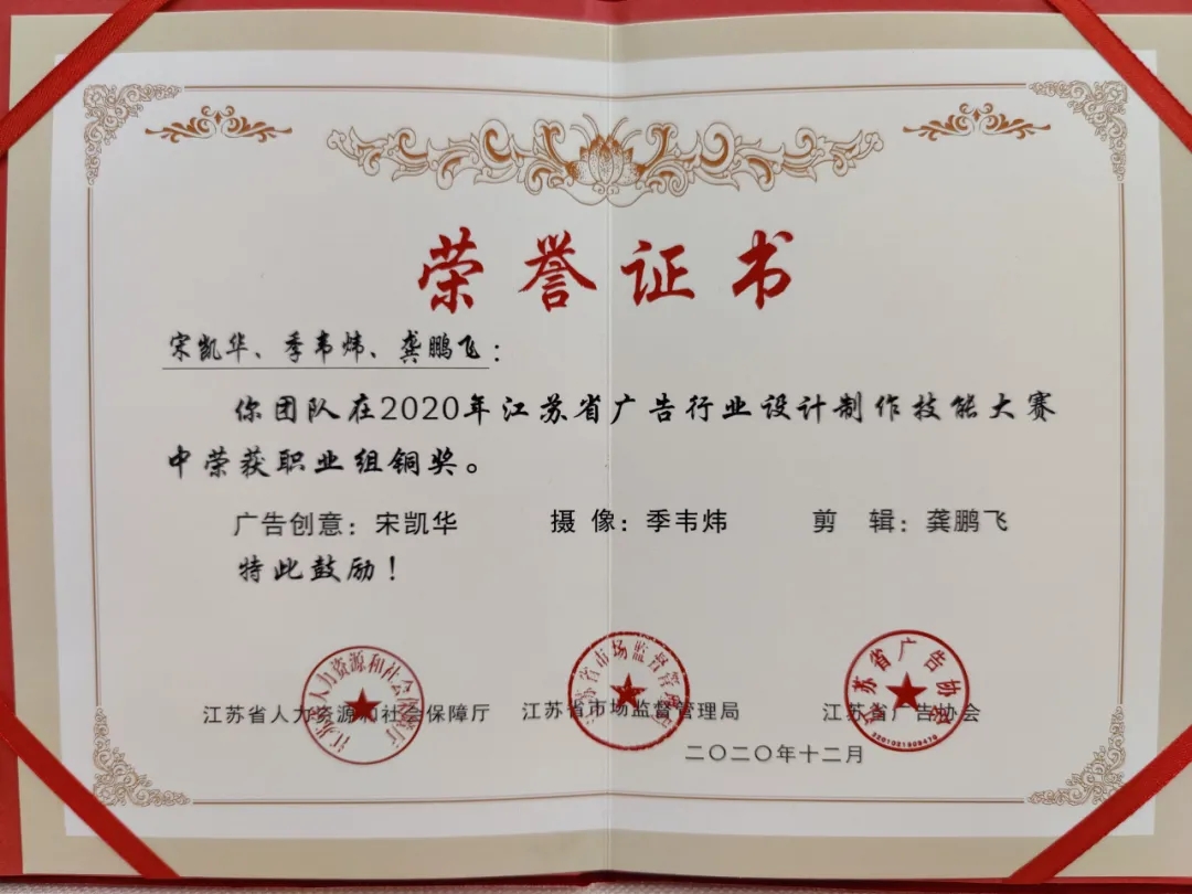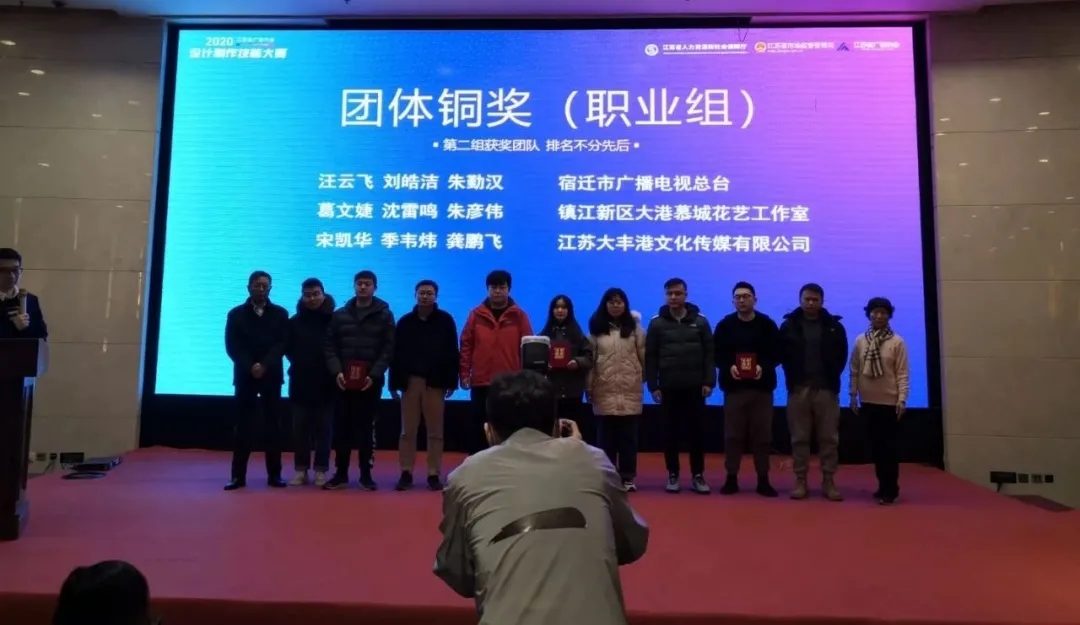 12月27日,由江苏省人力资源和社会保障厅、市场监督管理局、广告协会主办的2020年江苏省广告行业设计制作技能大赛在南京圆满收官。盐城港集团旗下大丰港区传媒公司团队现场创作的《所见皆小康》短视频作品荣获职业组团体铜奖,成为盐城地区获得本次赛事最高奖项。