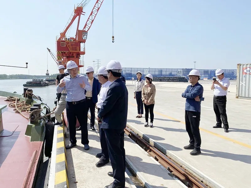 5月22日,枣庄市交通运输局党组成员、枣庄市港航和机场建设发展中心主任邵学良一行到陆港集团考察内河港口建设情况。市交通运输局党委委员、市港口管理局副局长赵飞,盐城港集团党委委员、董事、副总经理陈正华参加考察。