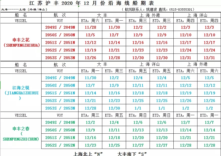 划重点:沪盐专线十二月份船期