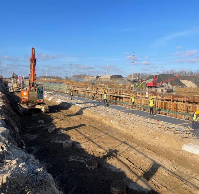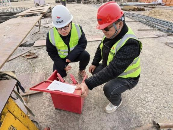 大丰港区内河北作业区项目现场,紧张有序的奋进景象同样令人动容。当前项目正处于技术复杂、工序衔接紧密的攻坚阶段,项目部提前部署、科学统筹,元旦期间保持 “管理力度不减、施工标准不降”,组织多支专业攻坚班组轮班作业。施工现场,工人们手持扎钩穿梭于钢筋网格间,将冰冷的钢筋编织成坚实的 “安全长城”,全力推进地上防洪墙施工,以日计划保周进度、以周调度促月完成,筑牢港区防汛第一道防线。“虽然不能回家过节有点遗憾,但看着工程一天一个样,心里特别踏实。” 一位正在校核测量数据的技术员道出了众多建设者的心声。他们各司其职、默契配合,在机械运转与焊花闪烁中冲刺关键节点,用扎实的工程进展为港区发展注入蓬勃活力。