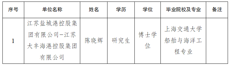根据江苏盐城港控股集团有限公司相关程序规定,现对1名拟录用人员进行公示。