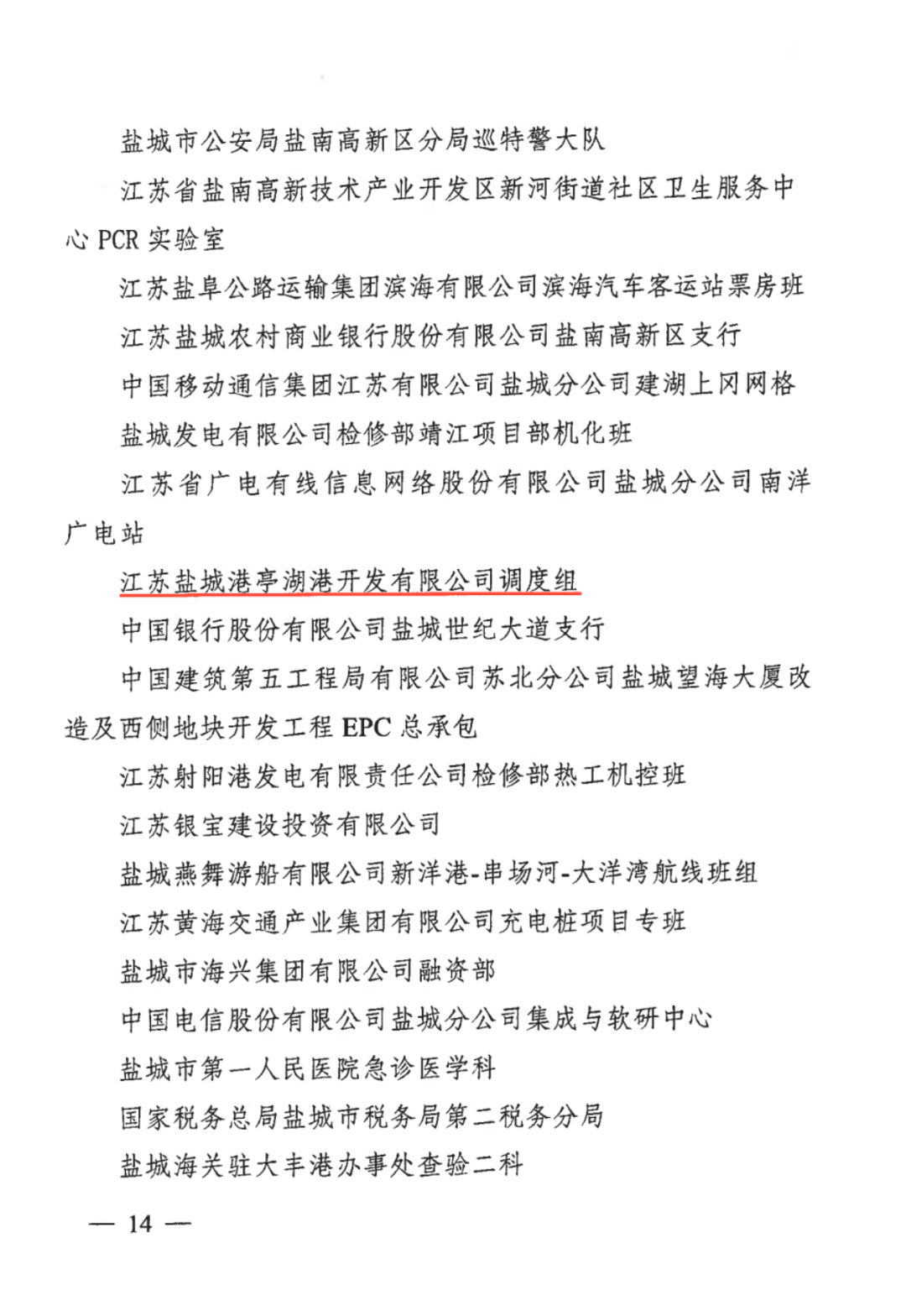 荣获“盐城市五一劳动奖章” 江苏盐城港亭湖港开发有限公司调度组